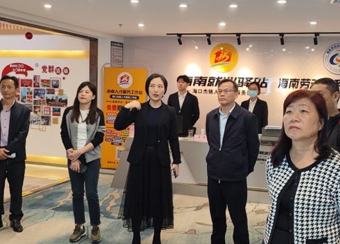 2025年4月23日下午,??谑旋埲A區市場監督管理局副局長羅瓊、主任李卓燁一行赴海口市(龍華)人力資源服務產...